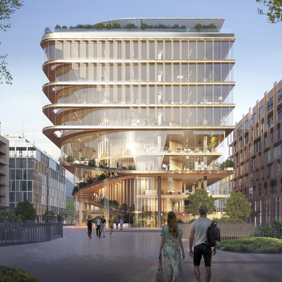 The concept prioritises public green space by minimising building footprints and creating a permeable, walkable landscape. More than half of the site is accessible to the public, with plazas, promenades, and biodiverse areas that invite daily use and enhance urban livability. The three main buildings are arranged to maximise light, accessibility, and social interaction while maintaining efficiency and flexibility for future adaptation.