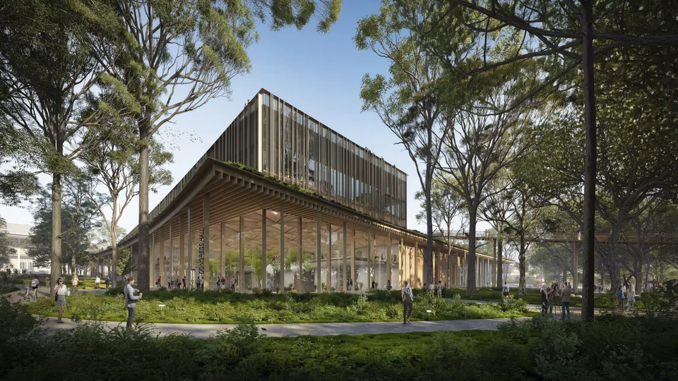 At its heart, a dense, self-sustaining forest forms the campus’s green core, supporting biodiversity, carbon capture, and thermal comfort. Green roofs, circular design strategies, and a holistic sustainability framework address ecological, social, and operational goals. Together, these elements shape a resilient, human-centred workplace that embodies the progressive values of ESM and the Luxembourg State.