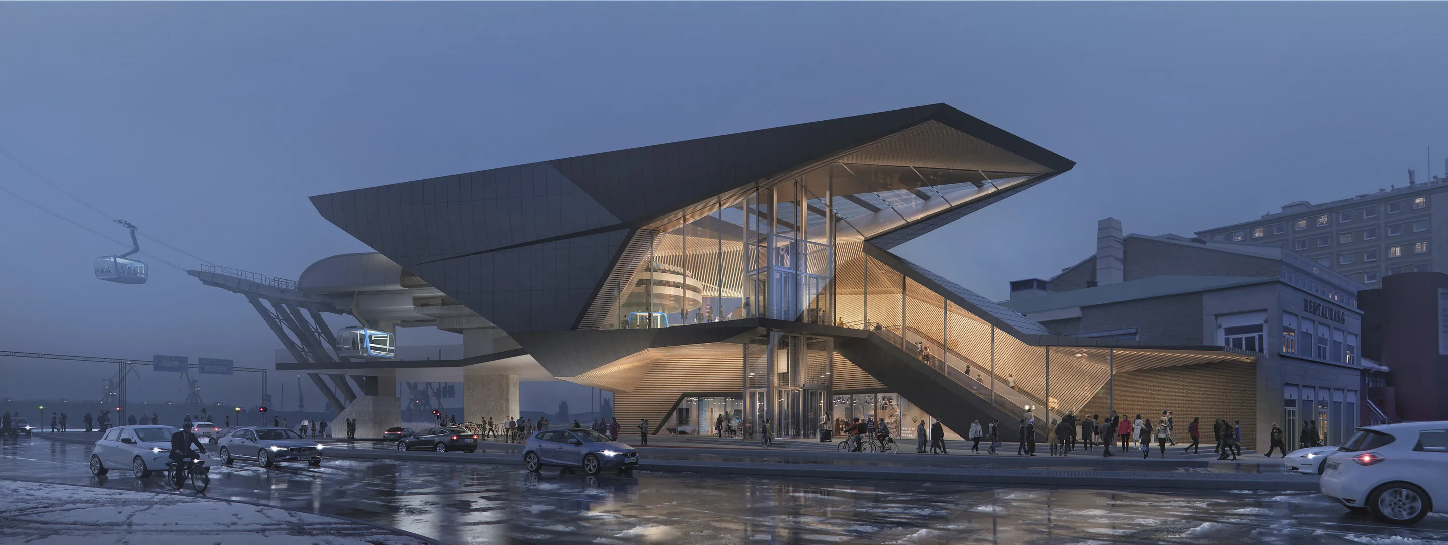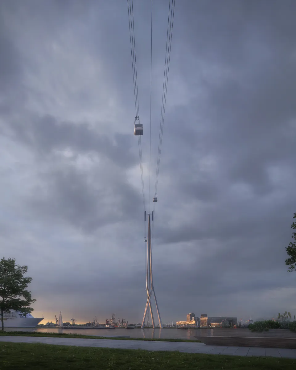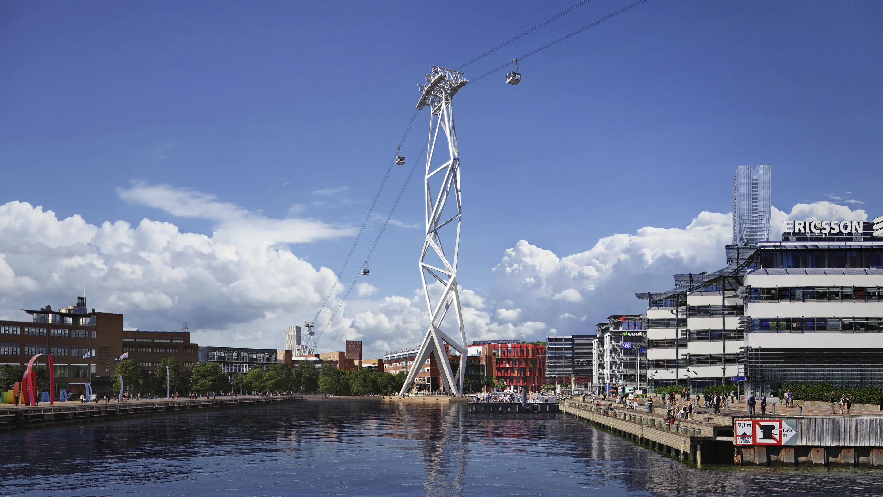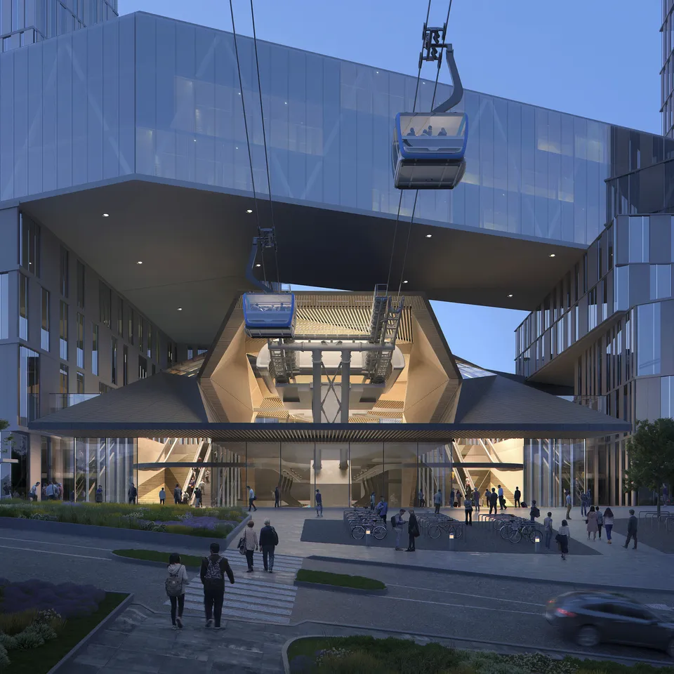 Cable car facilities, integrated into public transport system consisting of 4 stations and 6 towers