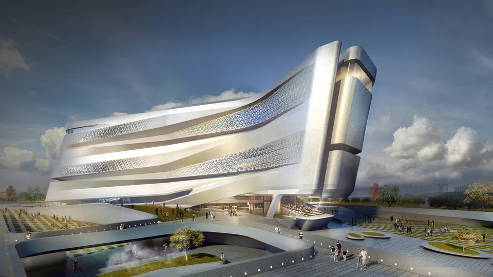 The building’s design reflects the duality of Hebrew, with horizontal volumes and flowing voids inspired by the graphic flow of written Hebrew, while robust exterior forms and soft, undulating interior ceilings echo the contrast between spoken Hebrew’s strength and gentleness. This thoughtful design creates a dynamic and immersive environment that honors the legacy and future of Hebrew.