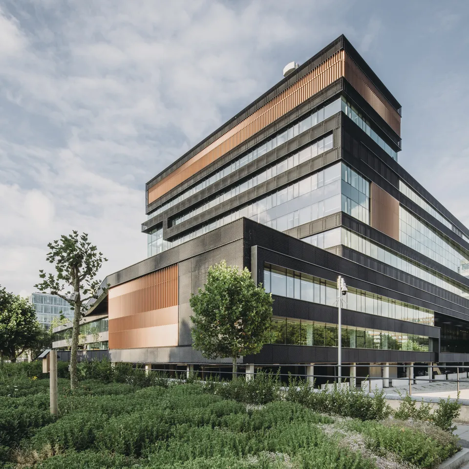 The project prioritises resource efficiency, circular construction, and flexible design, creating a future-proof workplace that enhances well-being and fosters community interaction. The tower incorporates advanced sustainable technologies, including a photovoltaic facade, geothermal heating and cooling, rainwater management, and energy-efficient systems like LED lighting and energy-recuperating elevators. Its design minimises solar gain with a 50% closed facade and features green terraces, roof gardens, and a green lobby to improve the microclimate and working environment.