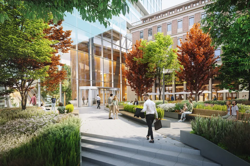 Strategically designed to activate public spaces, The Bridge fosters a sustainable urban future while offering 47,000 m2 of office space and facilities for bicycles, electric cars, and scooters. Sustainability is at the core of The Bridge, featuring environmentally friendly solutions and a smart operating system developed by Ghelamco. This system enhances safety with features like virucidal UV lamps and efficient air management. The project is the first commercial property in Central and Eastern Europe to achieve SmartScore and WiredScore certifications, alongside planned BREEAM, Well, and Green Building Standard certifications.