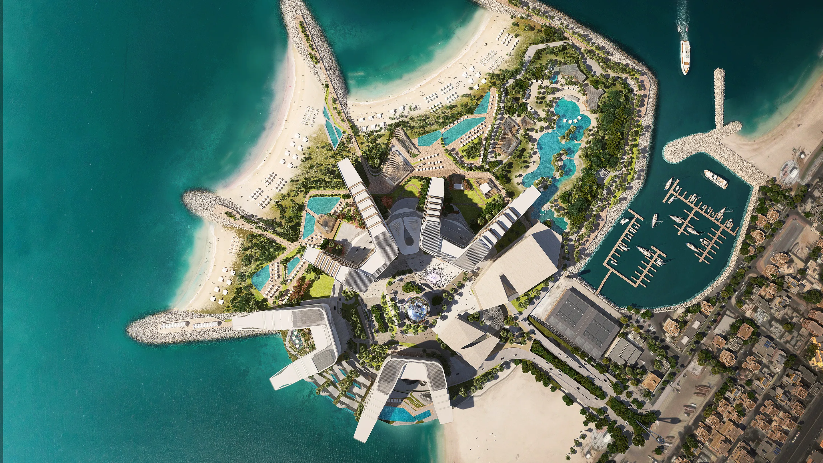 The Island in Dubai, designed in collaboration with Mirage Leisure and Development and other partners, is a major new resort in the Gulf region. Located on a circular raised peninsula, the design features a 1,000-metre-long waterfront and a central area that integrates culture, entertainment, leisure, and well-being to create an immersive destination.