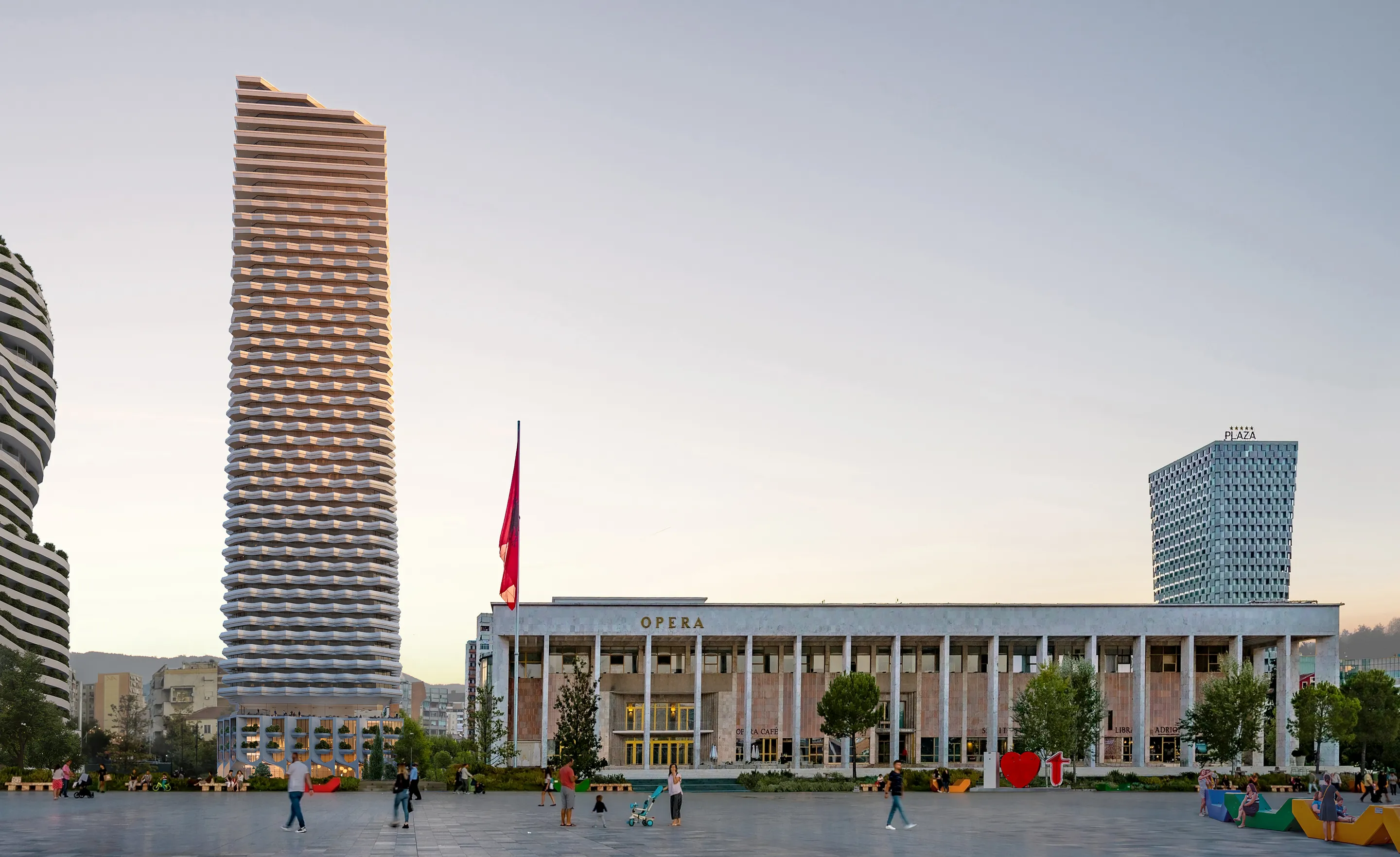 Tirana Tower reimagines the skyline of Tirana, Albania, as a new cultural and residential landmark inspired by the city’s heritage and natural surroundings. Rising 191 metres with 49 floors, the tower emerges from the historic Bazaar site, symbolising a connection between the past and the future.